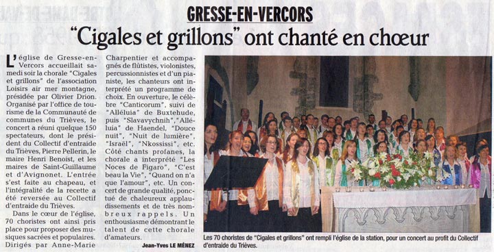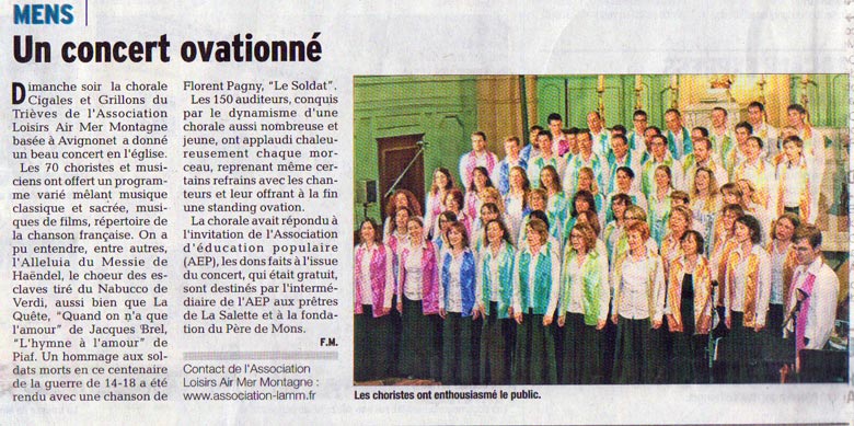 Concert à Mens (Dauphiné Libéré du 06/08/2014)