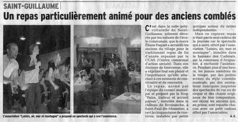 Animation au repas des anciens à St-Guillaume (décembre 2013)