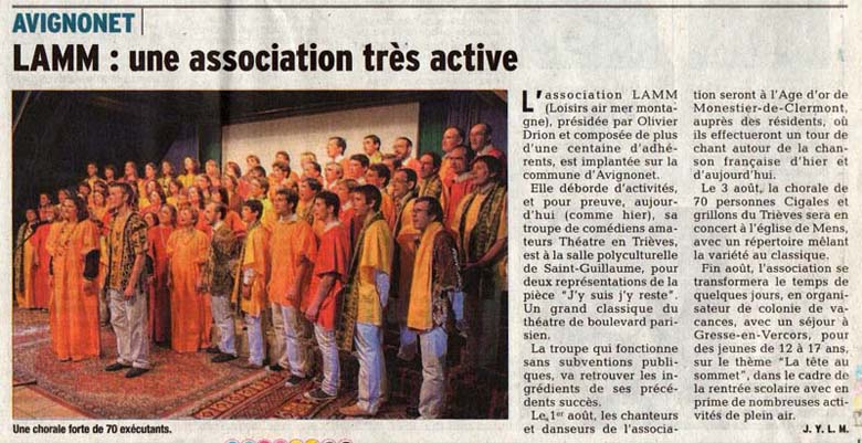 Les activités de l'association (Dauphiné Libéré du 29/07/2014)
